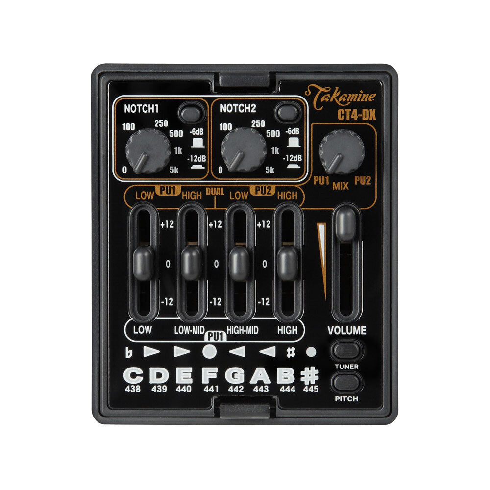 Built with the performer in mind, it features Takamine's proprietary CT4-DX preamp system paired with duo of the unique Palathetic under-saddle pickup and Takamine original soundboard transducer for peerless amplified response. The CT4-DX provides independent control over both pickups, each of which will then have two-band EQ and a notch filter control. You can also alter the mix levels of each of the pickups, and an onboard chromatic tuner.