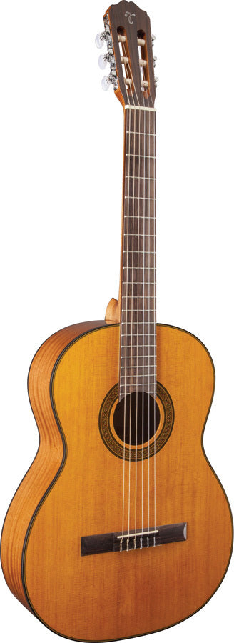 Perfect for any player looking for a great all around classical guitar, the TGC3 combines a fan braced solid cedar top with mahogany back and sides that produce a rich, resonant sound. The comfortable mahogany neck and laurel fingerboard provide great feel and playability, while the beautiful inlaid mosaic rosette adds a touch of traditional elegance.