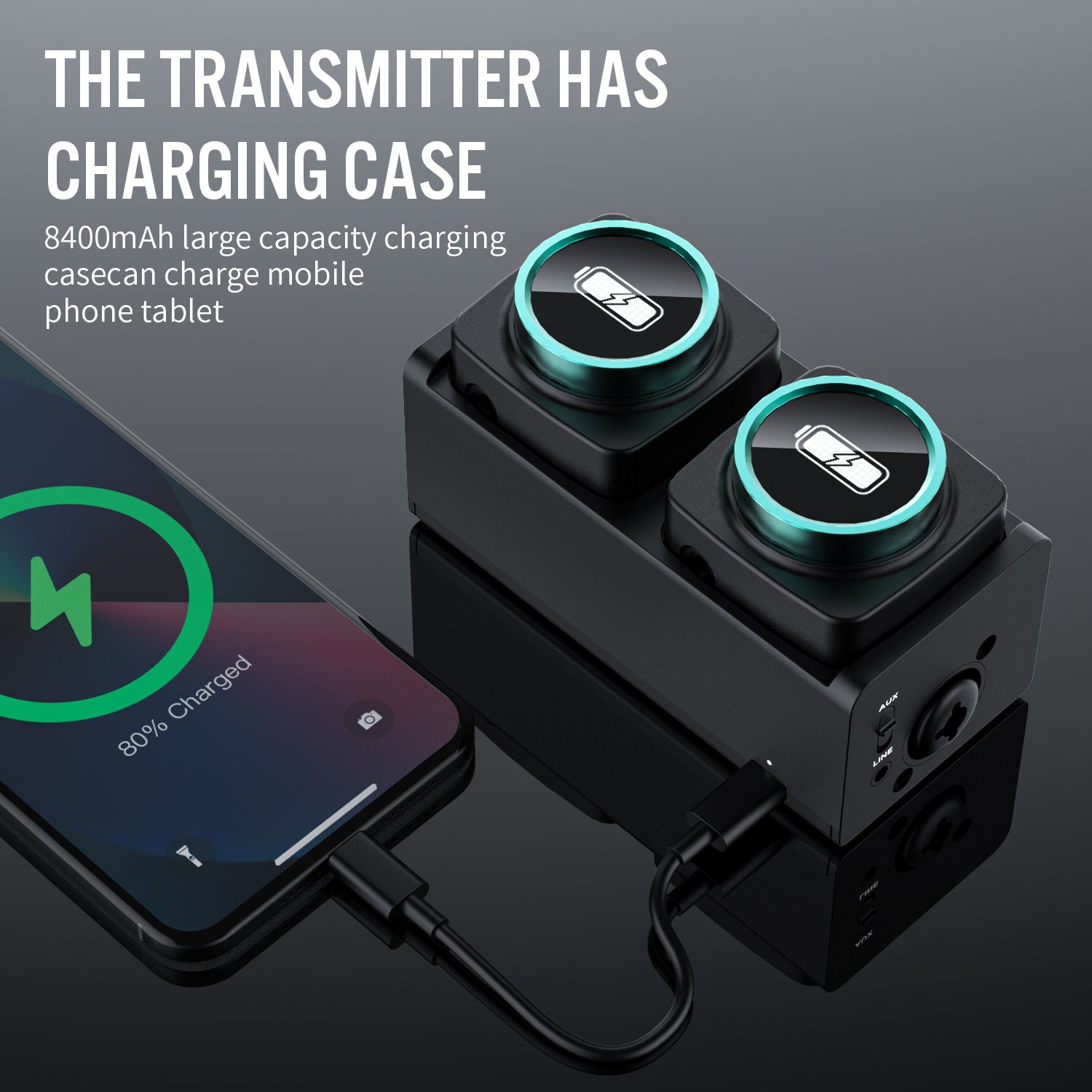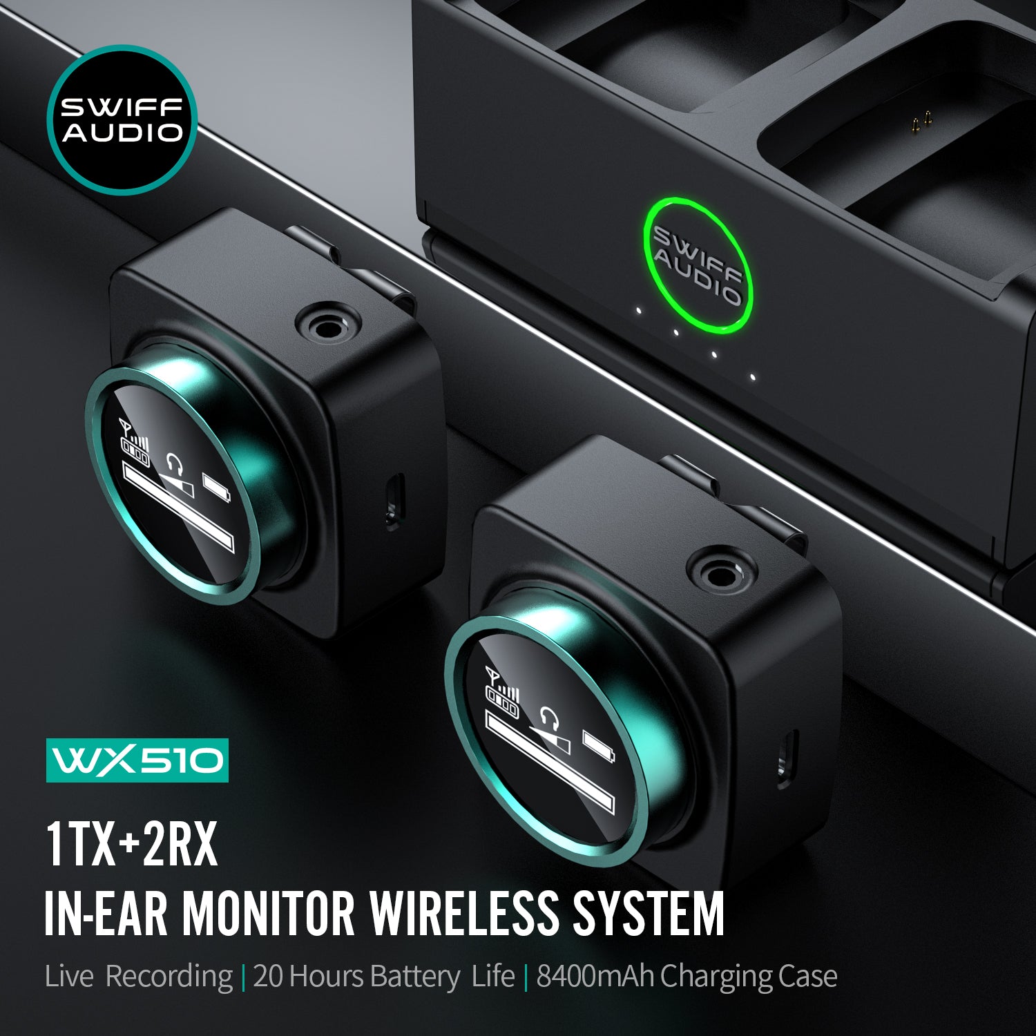 The WX510 includes two receivers and one transmitter in a convenient 8400mAh charging case – one single transmitter can transmit to as many receivers as desired, making this the perfect option for band rehearsal and live shows alike!