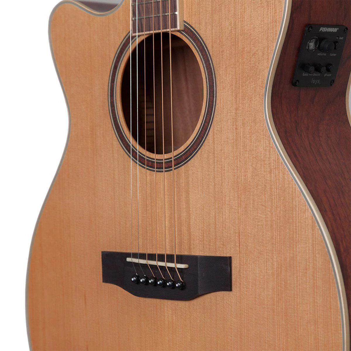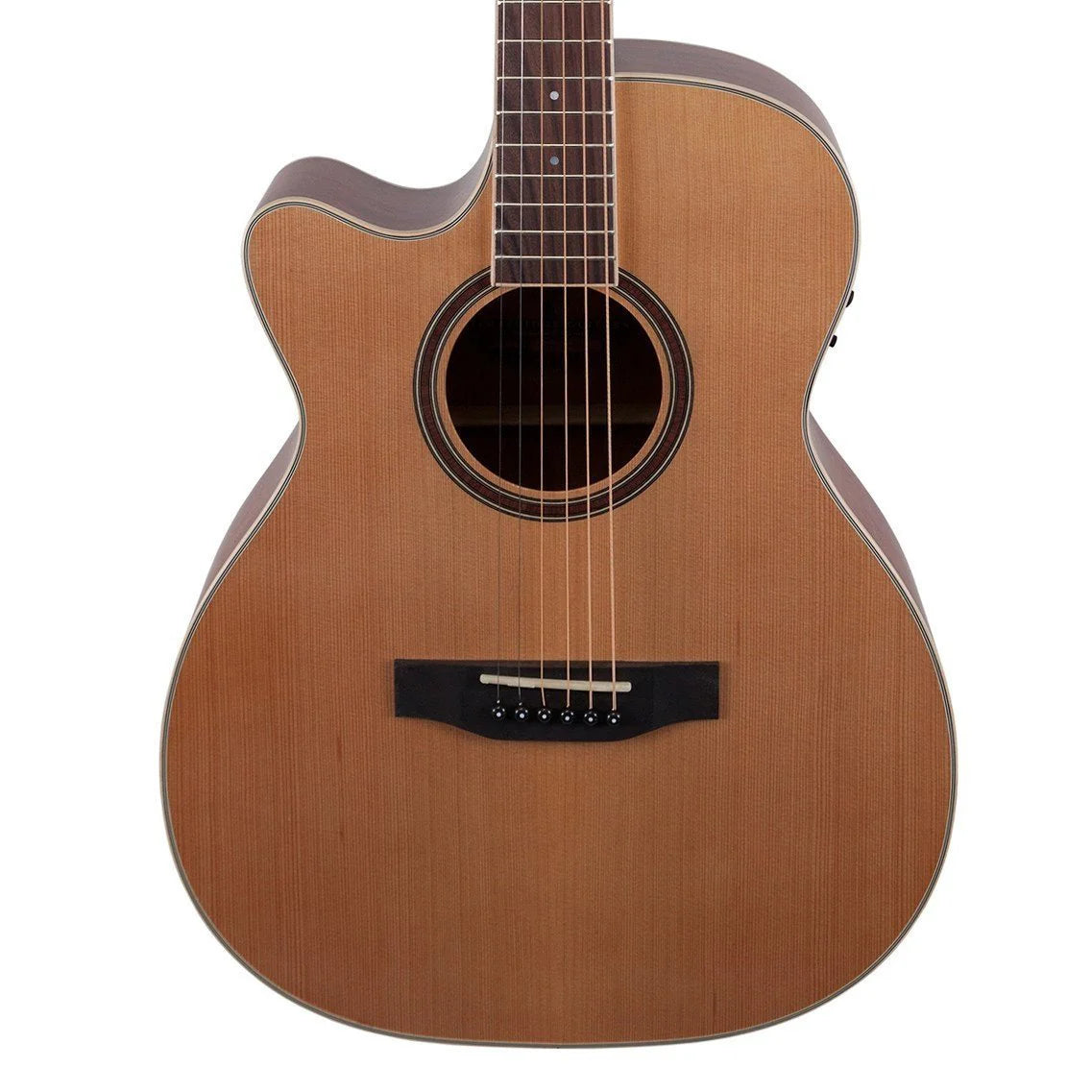 Timberidge '4 Series' Left Handed Cedar Solid Top Acoustic-Electric Small Body Cutaway Guitar (Natural Satin)